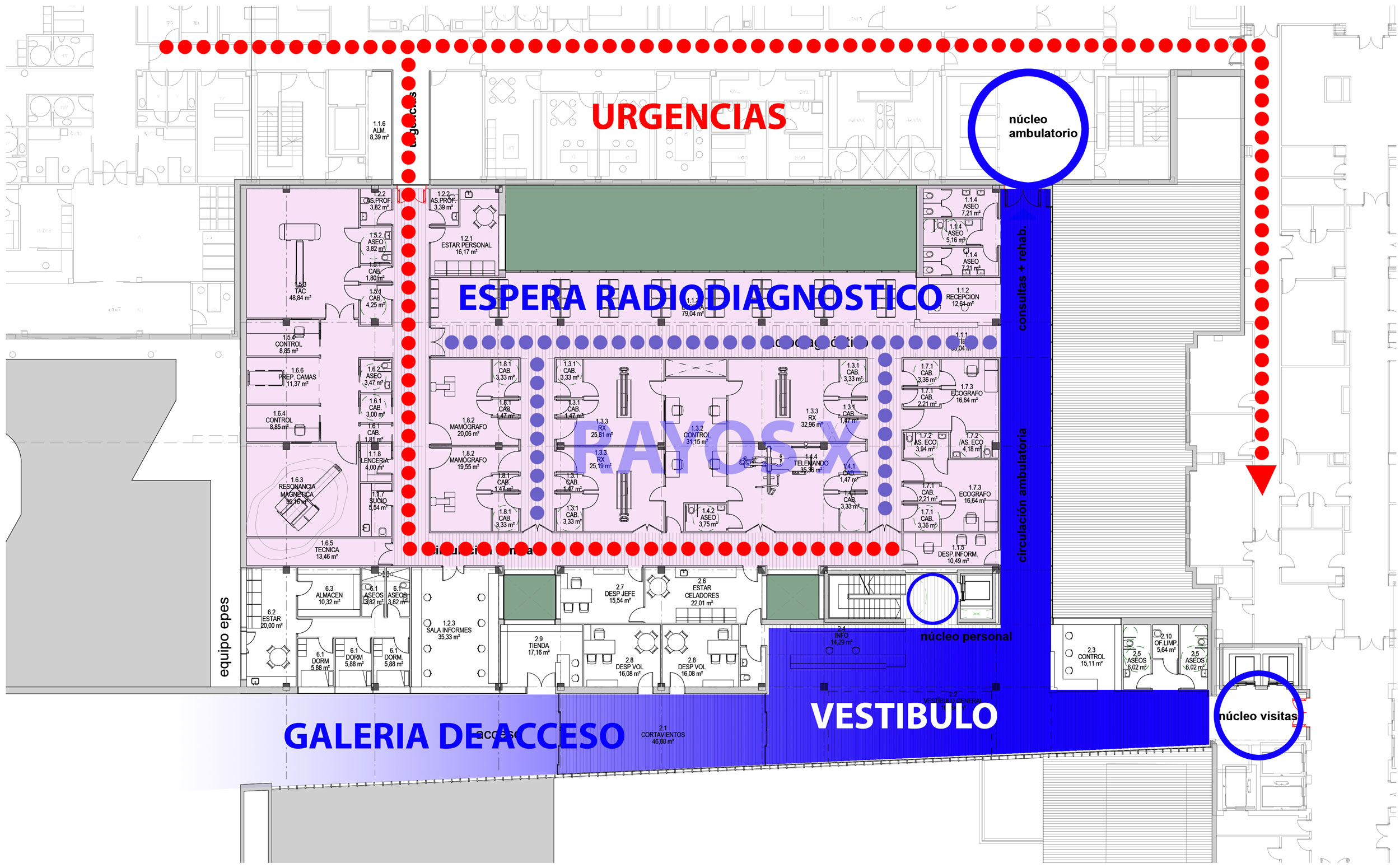 Esta propuesta conjuga de forma equilibrada la eficiencia del conjunto, donde se imponen los criterios de organización funcional, clasificación de circulaciones y circuitos, potenciando la accesibilidad, con unos ambientes humanizados, sosegados, buscando la armonía entre creatividad, productividad y atención.