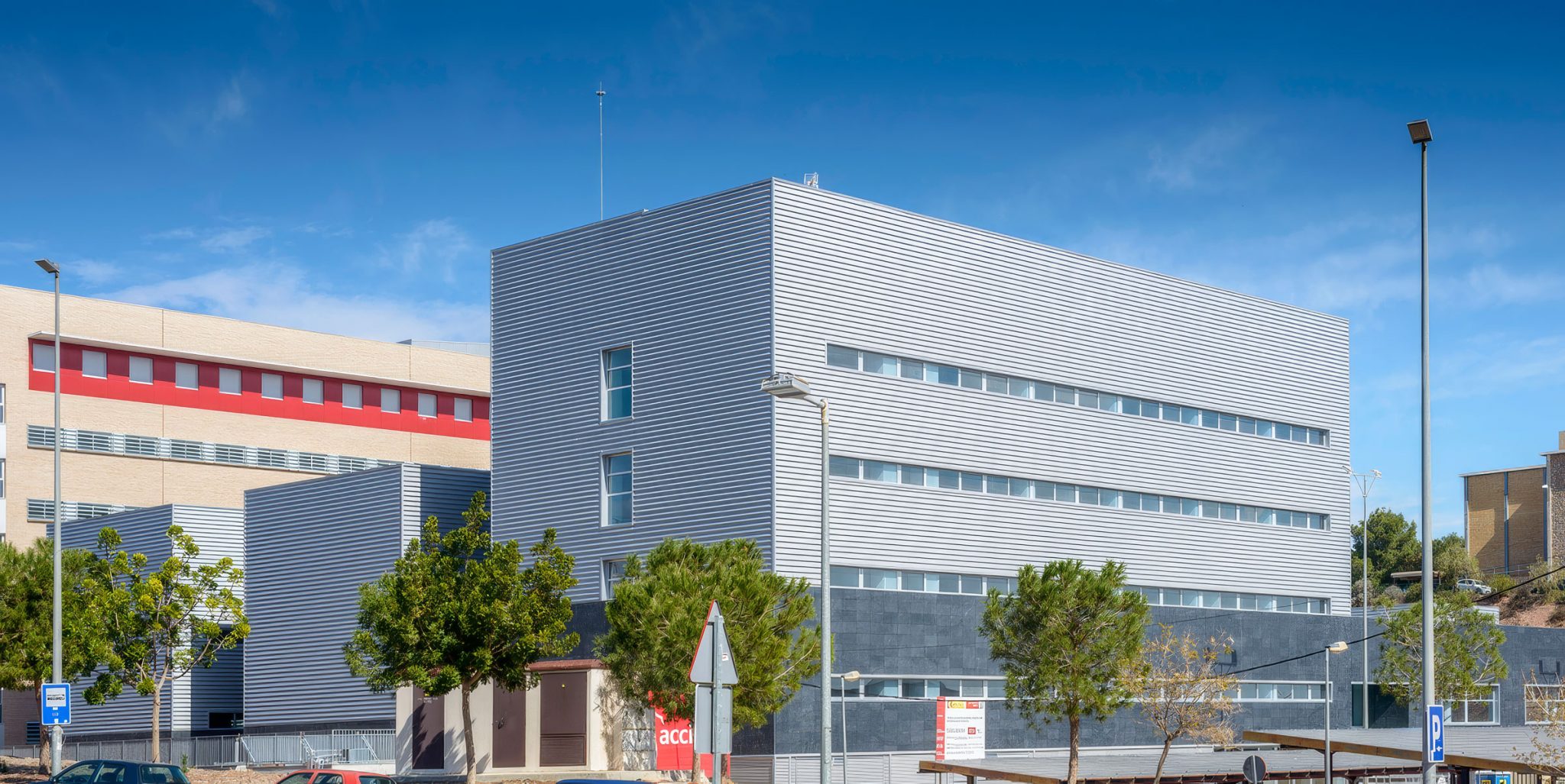 El volumen para el Centro de Investigación Multidisciplinar en Biociencias sigue formas sencillas y rotundas según un esquema modular. La flexibilidad, prioridad en el diseño, busca un edificio compacto organizado con espacios homogéneos y contiguos. Agrupación de cuatro edificios, todos dentro de una trama ordenada a partir de un único eje de circulaciones que ofrece la posibilidad de interconectar todos los edificios sin coartar la autonomía en su funcionamiento. La modularidad del edificio permite una construcción industrializada y económica del mismo.